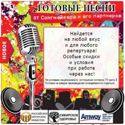 Проект «Сонгмейкер» расширяет круг своих возможностей и представляет большой каталог готовых песен от партнеров Сонгмейкера. Материал написан как в рамках проекта Сонгмейкер, так и в рамках других проектов. Предлагаем Вам ознакомиться с песнями в разных жанрах от разных авторов. Вы наверняка найдете материал для своего репертуара. Вам всего-то надо завести плейер! Следите за обновлениями и пополнениями!